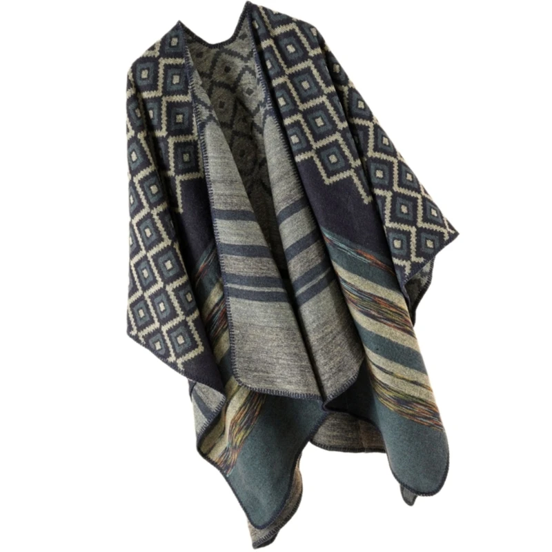 Embracing styles and comfortable with this Geometric Pattern Cloak,