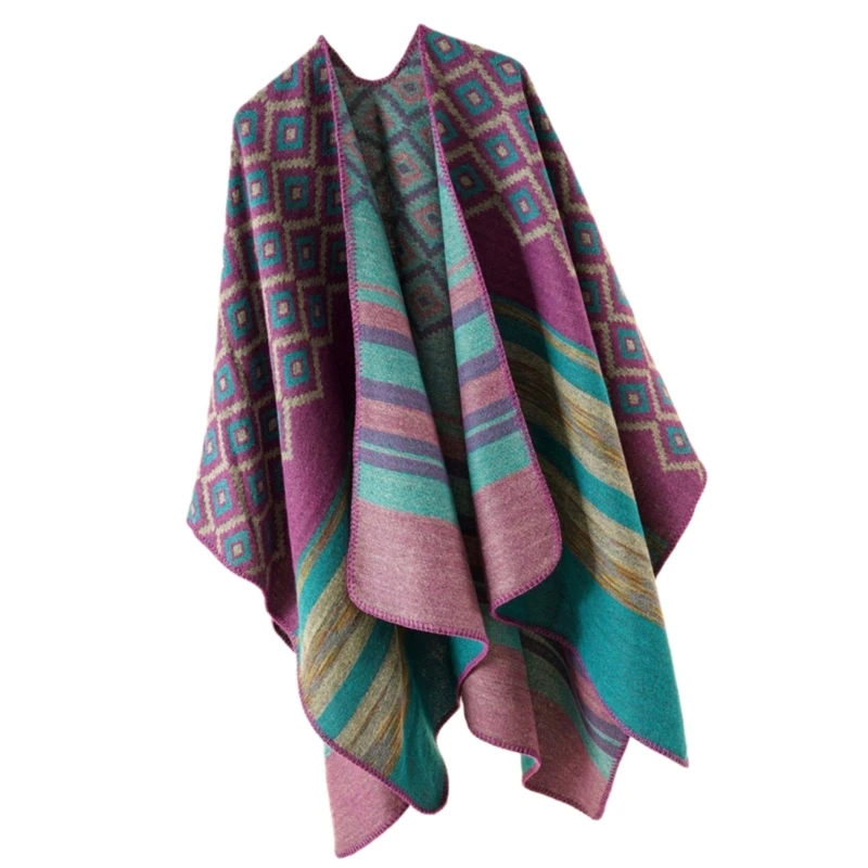 Geometric Pattern Mexico Poncho Sweater Handmade Pashmina Cloak Shawl Wrap for Travel Winter Autumn Windproof Capes
